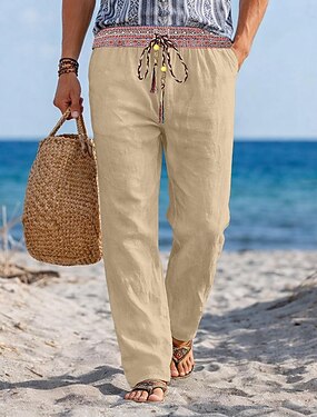 Per uomo Pantaloni di Lino Pantaloni Pantaloni Estivi Pantaloni Larghi Elastico in vita Gamba Dritta Semplice Comodità Traspirante Lunghezza intera Casuale Quotidiano Ferie Moda Stile Classico