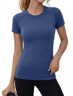 Per donna Piccola T-shirt Raglan T-shirt sportiva Top aderente Traforato Testurizzato Senza cuciture Tinta unica Elegante Manica Corta Girocollo Top Regolari Sportivo Bianco Blu Reale Lavanda Viola