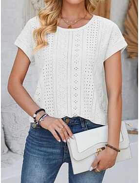 Per donna Blusa con texture Top traforato Maglietta traforata Maglietta Tinta unica Moda Classico Casual Manica Corta Girocollo Top Regolari Casuale Quotidiano Spiaggia Blu Nero Bianco Vino Blu marino