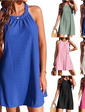 Per donna Mini Abito Abito Estivo Vestito all'americana Casual Quotidiano Vestibilità comoda Semplice Senza Maniche All'americana Blu Nero Bianco Rosa Estate