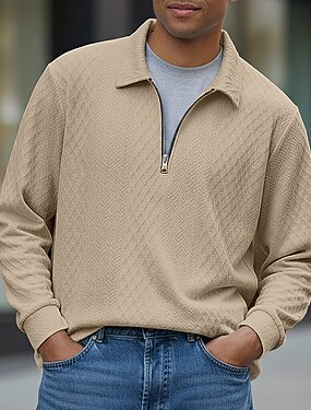 Per uomo Polo con zip Testurizzato Casuale Ferie Bavero Zip a un quarto Manica Corta Moda Essenziale Geometrico Semplice Jacquard Zip a un quarto Estate Primavera Primavera & Estate Vestibilit