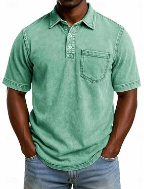 Per uomo Camicia lavata con acido Polo in Cotone Casuale Ferie Bavero Colletto Polo a Coste Manica Corta Moda Essenziale Semplice Vintage ▾ angosciato Estate Primavera Tutte le stagioni Vestibilit