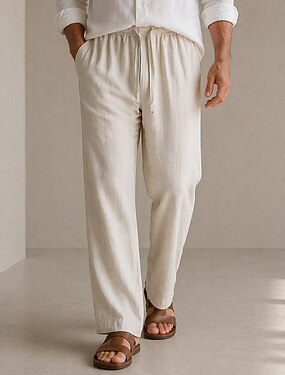 pantaloni da uomo in simil lino, estivi, con coulisse, elastico in vita, gamba dritta, tinta unita, comodi, traspiranti, lunghi, casual, quotidiani, all'aperto, per le vacanze, alla moda, blu e neri