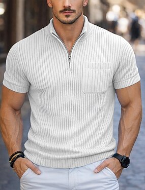 Per uomo Polo a nido d'ape Polo con zip a un quarto Giornaliero Per eventi Chiusura lampo quarto Manica corta Di tendenza Essenziale Color Block Primavera estate Standard Nero Bianco Rosso Blu marino