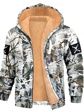 Per uomo Mimetico Cervo Pile Felpa con Cappuccio Giacca di pelle Felpa Classico Militare Da caccia Manica Lunga Girocollo All'aperto Campeggio Cachi Verde militare Grigio Con zip Autunno Inverno