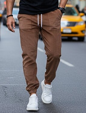 Per uomo Pantaloni Cargo Joggers Pantaloni Pantaloni in velluto a coste Pantaloni casual Coulisse Tasca Semplice Comodità Lunghezza intera All'aperto Casuale Quotidiano Moda Streetwear Cáqui Escuro