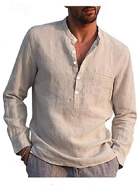 Per uomo Camicia camicia di lino Camicia con colletto a fascia Camicia estiva Abbigliamento mare Tinta unica Strada Hawaiano Blu chiaro Nero Bianco Vino rosso Manica lunga Colletto Abbigliamento