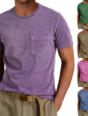Per uomo Maglietta Camicia 100% cotone lavaggio acido Manica Corta Girocollo Estate Primavera Tutte le stagioni Tinta unica Elegante Vintage Neutro Tasca Girocollo Sbiadito Casuale Casa All'aperto