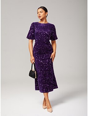 Per donna Abito in Velluto Abito con Paillettes Abito da Ballo Abito da Cocktail Elegante Glitter A palloncino Festa serale Feste Anniversario Paillettes Manica Corta Blu marino Viola Verde Primavera