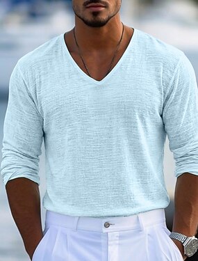 Per uomo Maglietta Maglietta in lino Manica Lunga Scollo a V Primavera & Estate Estate Primavera Tinta unica Semplice Testurizzato Quotidiano Casual Stile da Strada Puro Casuale All'aperto Streetwear