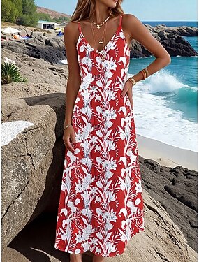 Per donna Abito Midi Vestito Estivo Abito a trapezio Abito Sottoveste Vacanza Casual Boho Spiaggia Vestibilità regolare Floreale Grafico Senza Maniche Scollo a V Blu Verde mela Nero Rosa Estate