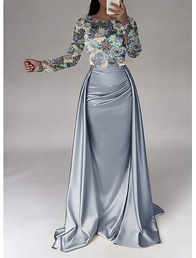 Sirena Tromba Lunghezza al pavimento Abiti da Ballo Spacco Alto Setoso Senza Maniche Scollo Tondo Ospite di nozze Cocktail party Abito da damigella Raso con Arricciato