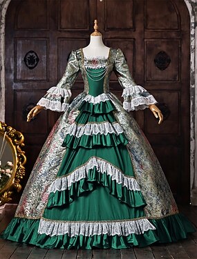 Rococò Barocco Abito da Ballo Lunghezza al pavimento Vestito Abito da Ballo Lunghe Principessa Gentildonna Sposa Floreale Abito da ballo Collo quadrato Costume Per donna Reale Halloween Carnevale