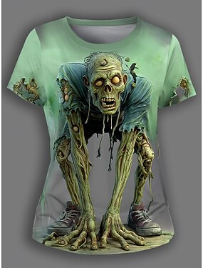 T-shirt da donna Grafica Teschi Casual Divertente Maniche Corte Girocollo Collo Rotondo Regolari Top Stampa Quotidiana Gialla Blu Viola Verde Estate