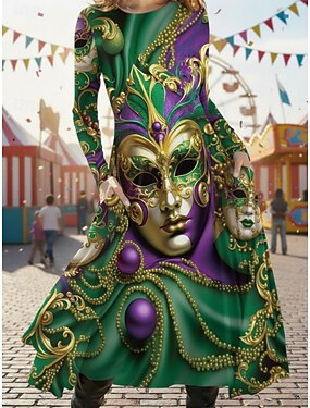 Per donna Abito maxi Vestito T-Shirt Casual Quotidiano Uscire Vestibilità regolare Grafico Geometrico Manica Lunga Girocollo Blu Giallo Viola Verde Estate Primavera Autunno