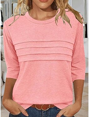Per donna Camicia Blusa Finto cotone e lino Stampato Semplice Attivo Elegante Manica 3/4 Girocollo Top Regolari Quotidiano Ferie Uscire Bianco Giallo Rosa Viola Estate Primavera