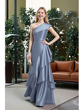 Tubino Colonna Lunghezza al pavimento Abito in Raso Vestito da Festa Abito da Cocktail Abito da cerimonia per signora Manica Corta Monospalla Elegante Formale Ospite di nozze Ricevimento di matrimonio