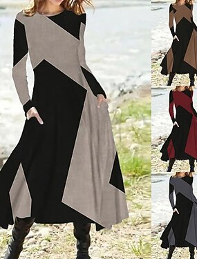 Abito A-Line lunghezza al tè abito da festa abito da cocktail abito da ospite di nozze abito della madre della sposa maniche lunghe scollo a girocollo elegante vintage festa in spandex con pieghe