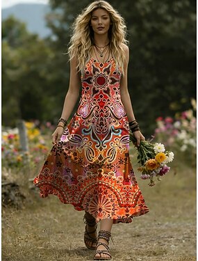 Linea ad A Lunghezza Tè Abiti da Cocktail Abito da Sera Da principessa Abito formale Elegante Stile Celebrità Principessa Senza Maniche Monospalla Festa in giardino Matrimonio Raso con Stampa floreale