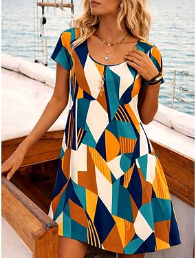 Per donna Mini Abito Vestito Estivo Vestito T-Shirt Abito a trapezio Abito Estivo Vacanza Casual Quotidiano Spiaggia Ferie Vestibilità regolare Grafico Geometrico Astratto Manica Corta Girocollo Blu