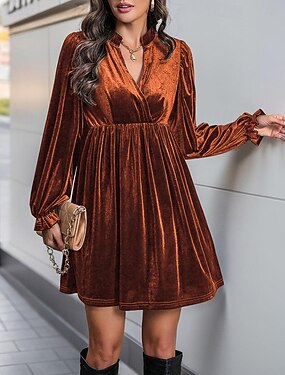 Per donna Mini Abito Abito di Natale Abito in Velluto Abito da Cocktail Moda Moderno Festa serale Data Weekend Vestibilità regolare Semplice Manica Lunga Scollo a V Vino Blu marino Arancione Verde