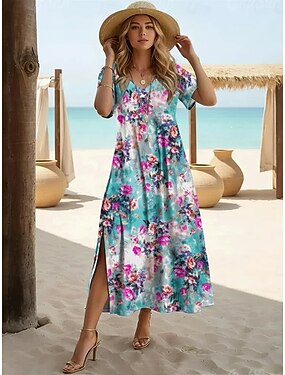 Linea ad A Lunghezza al pavimento Abito da Sera Da principessa Abito formale Elegante Monocolore Setoso Manica 3/4 Scollo a V Natale Formale Tasca Raso con Spacco