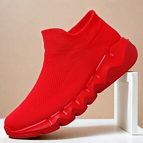 sneakers da uomo in flyknit rosse, leggere e traspiranti, scarpe casual eleganti per l'uso quotidiano, attività all'aperto e sport