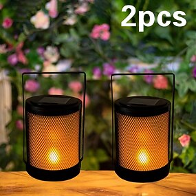 2 lanterne solari da esterno a fiamma di ferro, impermeabili IP65, portatili &Lampade a LED da appendere per giardino, patio, recinzione, scala, gradini, prato, vialetto, villa, feste, illuminazione