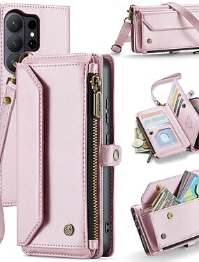 telefono Custodia Per Samsung Galaxy S26 Ultra Plus S25 S24 S23 S22 S23 FE S21 Ultra Plus S20 Copertura Posteriore Custodia Portafoglio Cerniera con Cordino Cavalletto Retrò TPU Pelle PU