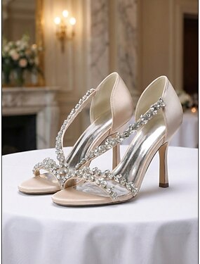 sandali da donna con tacco a spillo impreziositi da strass e cinturino alla caviglia - scarpe da sposa scintillanti per feste