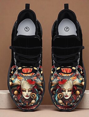 Sneakers colorate da uomo per il carnevale: similpelle vivace con design in maschera, perfette per carnevale, feste di carnevale ed eventi festivi