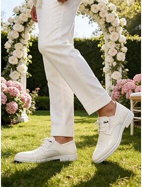 scarpe eleganti da uomo in similpelle bianca, calzature formali classiche con finitura lucida, perfette per matrimoni ed eventi speciali