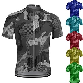 Per uomo Maglia da Ciclismo Geometrico Mimetico Manica Corta Bicicletta Maglia Top con 3 tasche posteriori Mountain Bike MTB Ciclismo su strada Asciugatura Rapida Strisce Riflettenti Tasca Posteriore