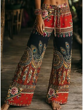 Per donna Gamba larga Pantaloni Pantaloni casual Vacanza Casual Boho Lunghezza intera Vita media Grafico Paisley Stratificato Asimmetrico Morbido Confortevole Inelastico Quotidiano All'aperto Vacanza