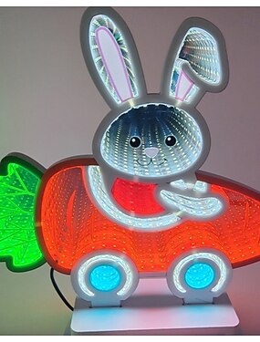 coniglietto 3D illuminato a LED con Pasqua, luce notturna coniglietto pasquale creativa, carrello di carote, luce infinita per uova, acrilico