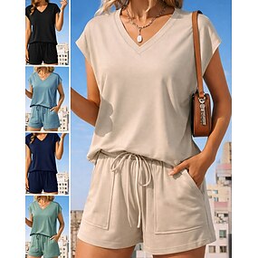 Per donna Set di tute e pullover Tuta da 2 pezzi Pantaloncini da pista Coulisse con tasca Tinta unita Set di Abbigliamento Sportivo Estate Primavera Nero Blu marino Allenamento in Palestra All'aperto