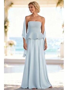 Due Pezzi Linea ad A Lunghezza al pavimento Abito da invitata a nozze Abito da cerimonia per signora Senza Maniche Senza Spalline Elegante Formale Ricevimento di matrimonio Con Stola con Volant