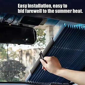Parasole retrattile per parabrezza auto, parasole universale a fisarmonica plissettato per parabrezza, blocca i raggi UV &Tendina parasole automatica per auto, SUV, camion e berline, nera, facile da