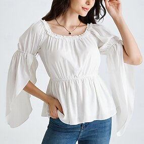 Medievale Rinascimento 17° secolo Lunghezza media Blusa / Camicia Costume Cosplay Cavaliere Vichingo Cavaliere Celtico Elfico Coulisse Tinta unita Costume Per uomo Costumi da pirata Fantasia