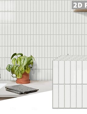 10 adesivi murali in PVC bianco spesso con motivo a mosaico, dimensioni 17x23 cm, autoadesivi, in stile vintage americano, carta da parati rimovibile per inquilini, camera da letto, bagno, armadi,