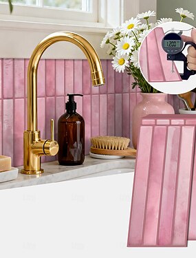 20 pezzi adesivi murali 3D autoadesivi effetto piastrelle, adesivi murali rimovibili con motivo decorativo rosa, utilizzati per la decorazione del parafango posteriore della cucina, della camera da