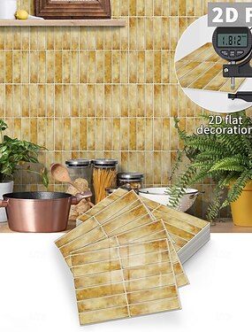 10 adesivi murali in PVC da 17x23 cm, spessi, con motivo a mosaico color oro caldo, autoadesivi e rimovibili, in stile vintage americano, ideali per inquilini, camera da letto, bagno e armadi, facili