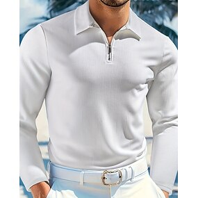 Per uomo Polo Polo con zip a un quarto Vacanza Streetwear Zip a un quarto Manica Lunga Moda Essenziale Blocco di colori Primavera Autunno Vestibilità su misura Bianco Polo