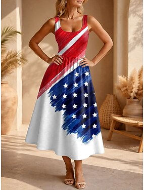 Giorno dell'Indipendenza Americana Per donna Abito Midi Vestito Estivo Abito a trapezio Vacanza Casual Boho Spiaggia Data Vestibilità regolare Grafico Bandiera Senza Maniche Collo a U Rosso Viola