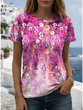 Per donna Maglietta Cerniera Floreale Grafico Piante Elegante Casual Manica Corta Girocollo Top Regolari Quotidiano Sportivo Weekend Blu Giallo Rosa Viola Verde Estate Primavera