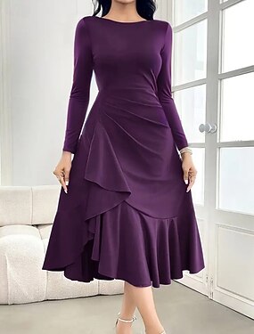 Per donna Abito Midi Abito arricciato Moderno Quotidiano All'aperto Uscire Vestibilità regolare Semplice Manica Lunga Scollo a V Nero Vino Viola Marrone Primavera Autunno