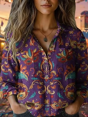 Per donna Camicia Camicia Boho Blusa Stampato Grafico Geometrico Paisley Vintage Quotidiano Elegante Manica Lunga Scollo a V Top Regolari Quotidiano Ferie Blu Rosa Rosso Viola Verde Estate Primavera
