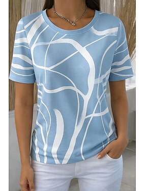 Per donna Maglietta Stampato Grafico Astratto Elegante Classico Casual Manica Corta Girocollo Top Regolari Quotidiano Blu Viola Arancione Verde Cachi Estate Primavera