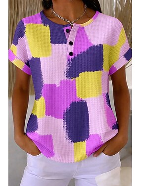Per donna Maglietta Waffle Top a maglia con texture Top estivi Grafico Geometrico Elegante Classico Manica Corta Girocollo Top Regolari Casuale Quotidiano Verde chiaro Viola chiaro Arcobaleno Estate