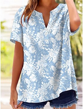 Per donna Maglietta Floreale Grafico Piante Elegante Classico Manica Corta Scollo a V Top Regolari Casuale Quotidiano Blu Rosa Viola Verde Estate Primavera